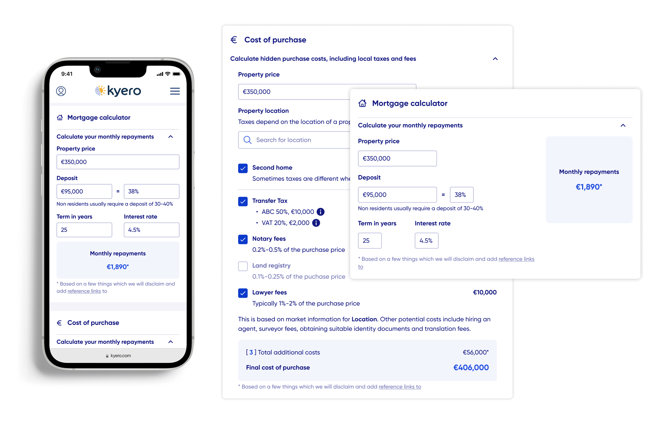 To ease user worry and confusion around the final costs of property purchases, we introduced two new tools, present on every property page.